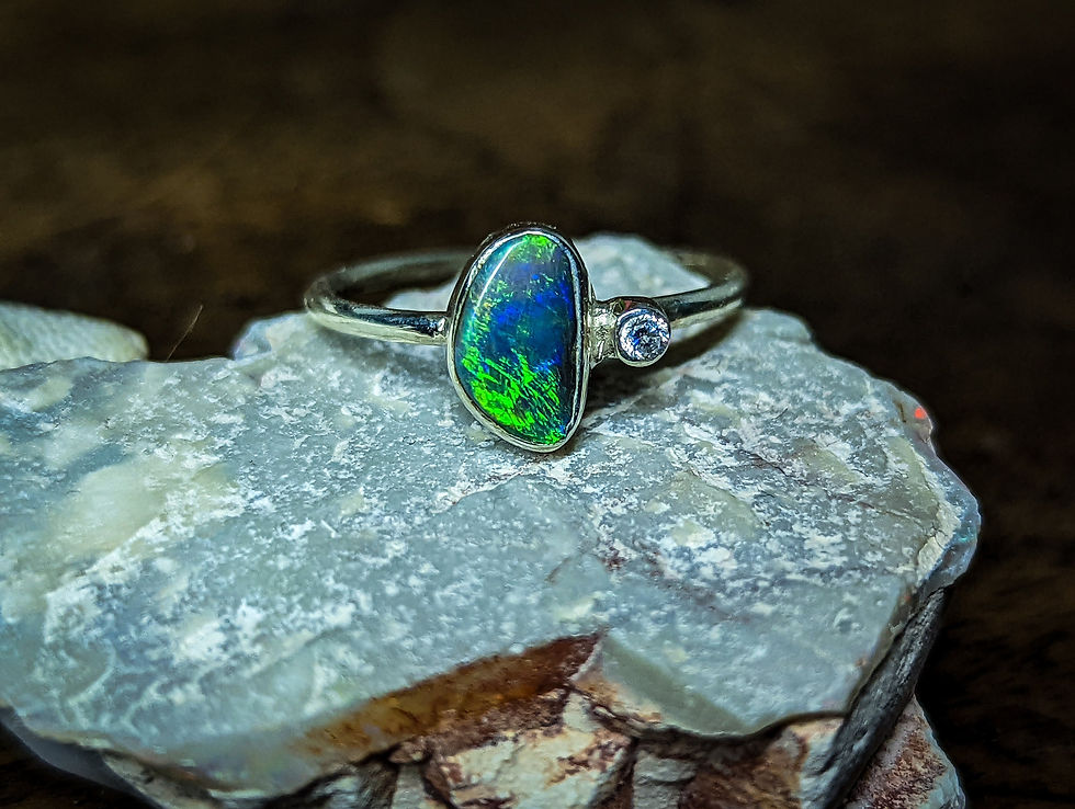 Bague opale d'Australie, Taille 56 ; 7.75 US, electroformage